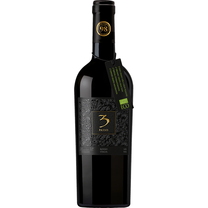 Een rijpe, zwoele Zuid-Italiaanse wijn met geurtonen van gedroogd fruit, tabak en mokka. In de smaak veel concentratie. Proef de zon! Een krachtige rijpe wijn in de kenmerkende Zuid-Italiaanse stijl. Gemaakt van Primitivo, Negroamaro en Sangiovese. Gedroogde druiven worden verschillende malen overgepompt met andere most om zo een grote smaakextractie te creëren.